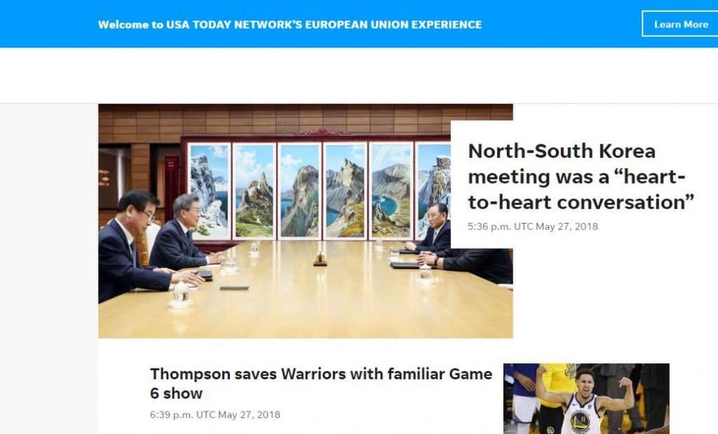 Amerikkalainen USA Today julkaisi EU:n tietosuoja-asetuksen vuoksi erillisen version uutissivustostaan. EU-käyttäjille näkyvältä sivustolta oli poistettu kaikki käyttäjiä seuraavat ja heistä tietoa tallentavat ohjelmat. Sivulla ei myöskään ollut mainoksia.
