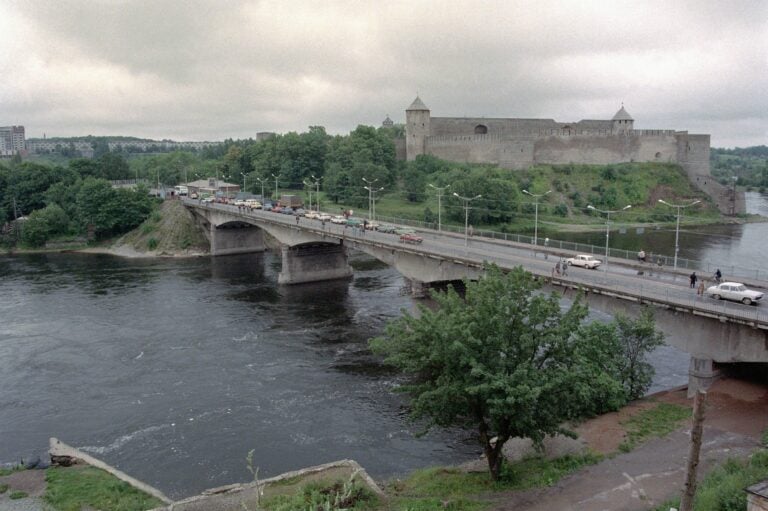 Narvajoki kulkee Narvan ja Iivananlinnan välistä. LEHTIKUVA / HEIKKI SAUKKOMAA