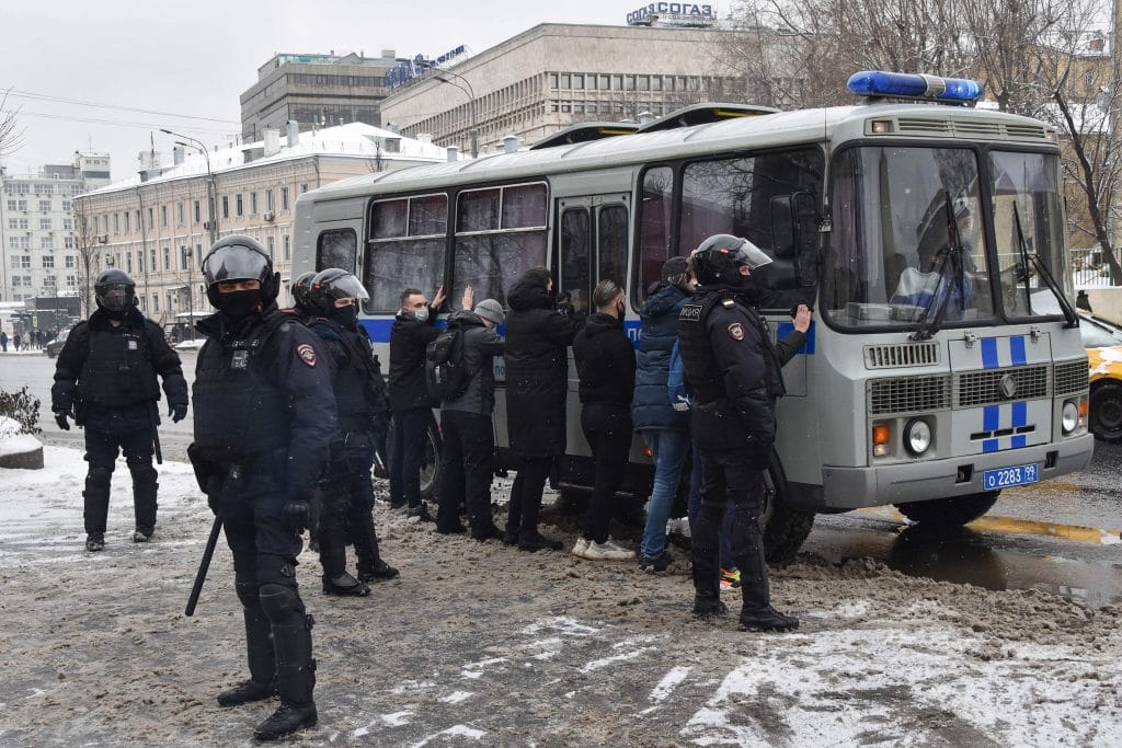 Maan ei-valtiollinen journalistiliitto ilmoitti, että 21 toimittajaa pidätettiin Moskovassa ja kymmenen Pietarissa.