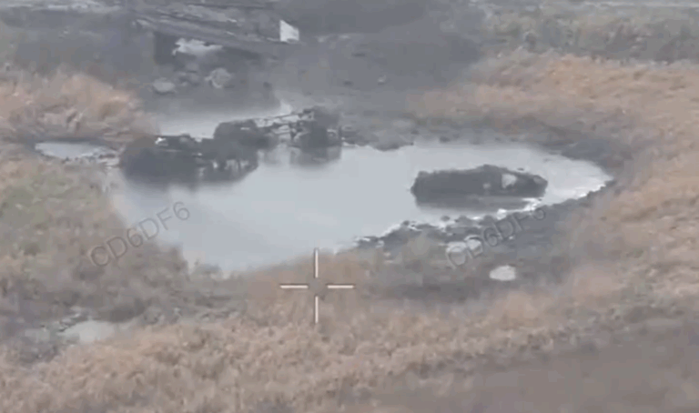 Videolla näkyy myös, kuinka Ukrainan droonit iskevät vesistössä jumissa oleviin panssariajoneuvoihin.