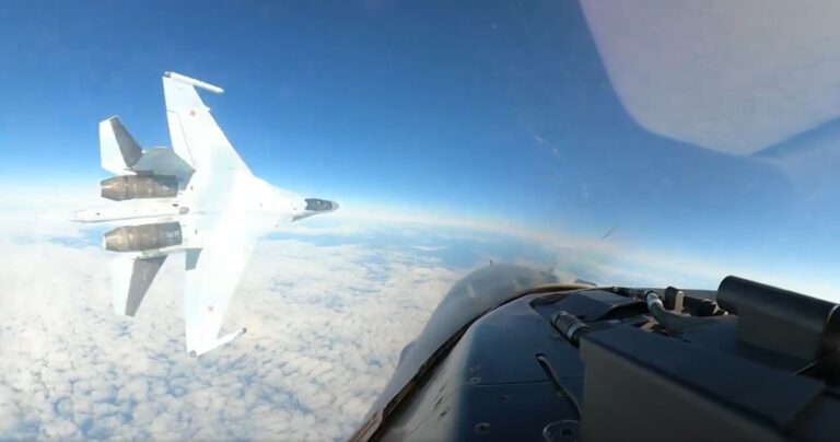 Pohjois-Amerikan ilmapuolustuskomentokeskus (NORAD)on julkaissut viestipalvelu X:ssä kuvia ja videon tilanteesta, jossa Venäjän Suhoi Su-35 -hävittäjä lentää vaarallisen lähellä Yhdysvaltain sotilaslentokonetta.