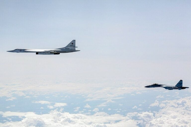 Ilmavoimien Hornetit-hävittäjät tunnistivat heinäkuussa 2019 venäläiset Tu-160-, A-50- ja Su-35 -koneet Suomenlahden ja pohjoisen Itämeren yllä. LEHTIKUVA / HANDOUT / ILMAVOIMAT