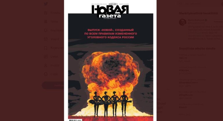 Novaja Gazetan kannessa todetaan punaisin kirjaimin, että numero on laadittu ”Venäjän uudistetun rikoslain mukaisesti”.
