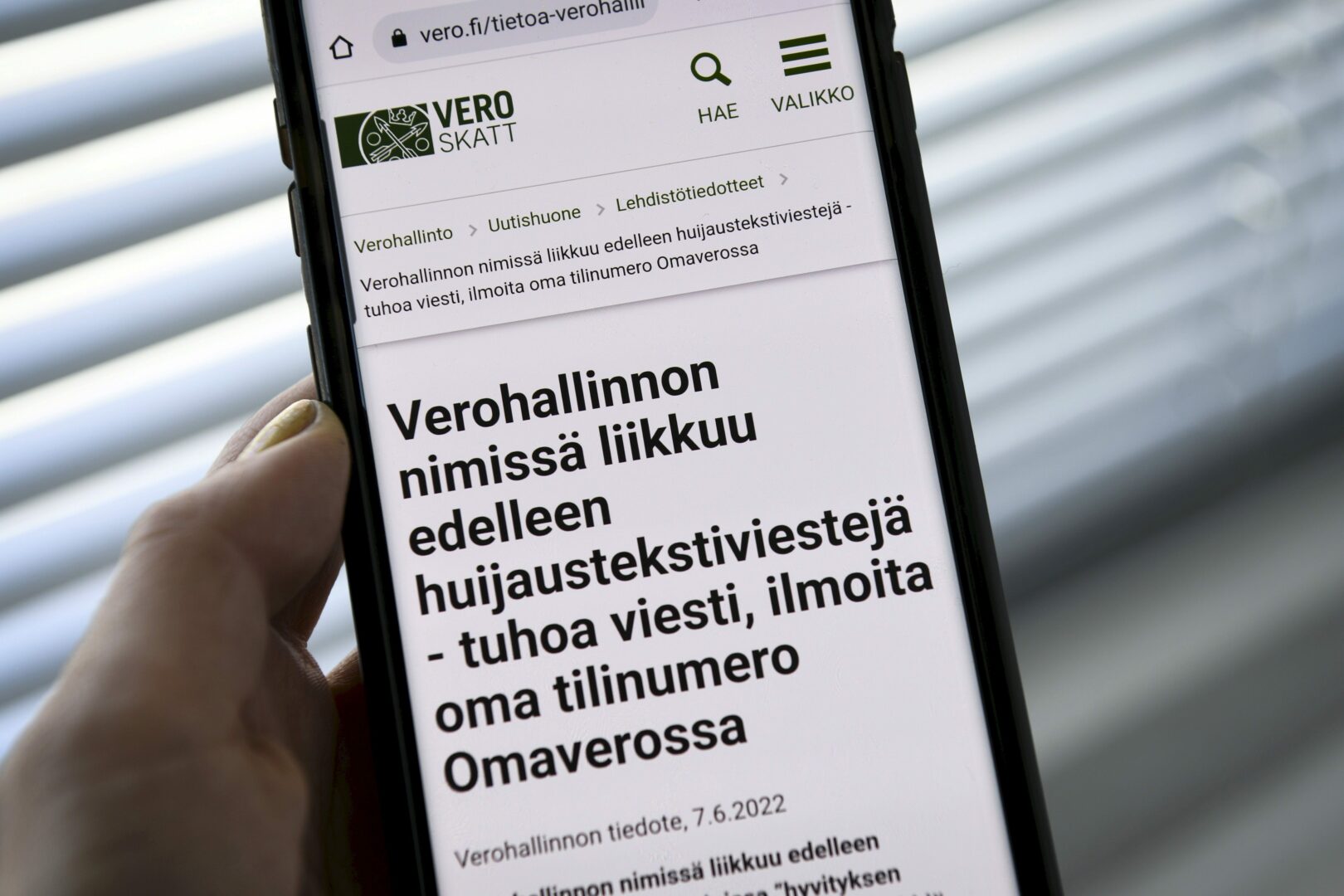 Huijausviesteihin ei tule vastata eikä siinä olevia linkkejä kannata avata. Verohallinto muistuttaa, ettei se koskaan kysy asiakkaan luottokorttitietoja tai pankkitunnuksia.