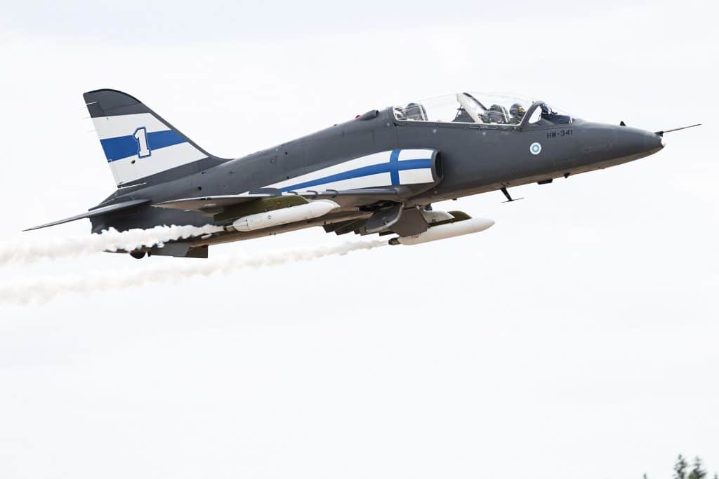 Ilmavoimat suoritti ylilennot kahdella Hawk-suihkuharjoitushävittäjällä Jyväskylän ja Porin sankarihautausmailla Suomen itsenäisyyden kunniaksi.