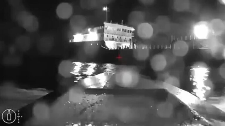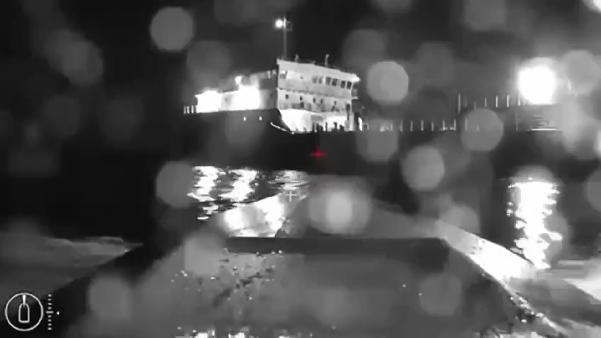Footage from the Ukrainian USV that targeted the Russian tanker Sig off the Kerch Strait, with a hit on the waterline near the engine room. pic.twitter.com/YEFkuaGpLv