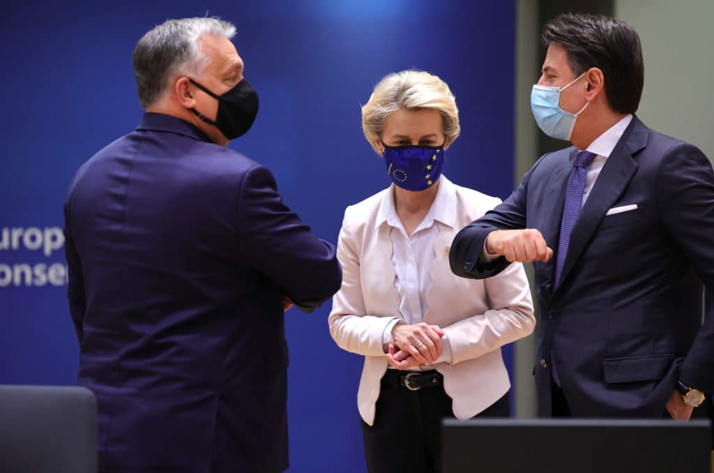 Unkari ja Puola olivat etukäteen uhanneet kaataa molemmat paketit. Syynä oli se, että EU-komissio, EU-parlamentti ja muut EU-jäsenmaat halusivat rahoituksen ehdoksi oikeusvaltioperiaatteen noudattamisen. Se tarkoittaisi, että EU-komissio voisi ottaa käyttöön niin sanotun oikeusvaltiomekanismin, jolla evättäisiin EU-tukien myöntäminen sääntöjä rikkovalle jäsenmaalle. Unkari ja Puola vastustivat ehdotusta.
