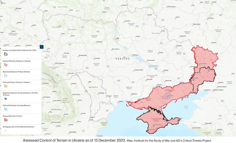 Venäjän tavoitteet Ukrainassa ovat raportin mukaan yhä samat kuin sodan alussa. Strategisena pyrkimyksenä on koko Ukrainan alistaminen. Tätä on viime aikoina sanottu julki Moskovastakin. Virallinen Venäjä on toistellut, että rauha vaatisi käytännössä Ukrainan hallinnon vaihtamista ja maan riisumista aseista. Lisäksi iso osa Ukrainan alueesta tulisi luovuttaa osaksi Venäjää.