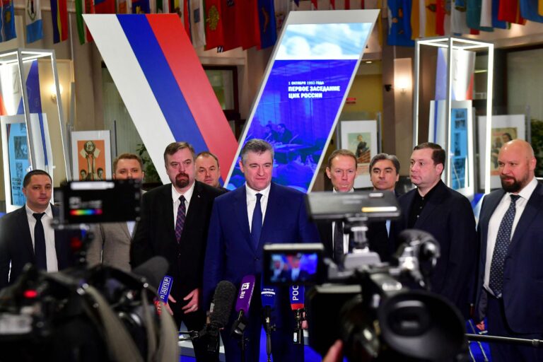 Leonid Slutski puhui medialle rekisteröidyttyään ehdokkaaksi. AFP / LEHTIKUVA / OLGA MALTSEVA