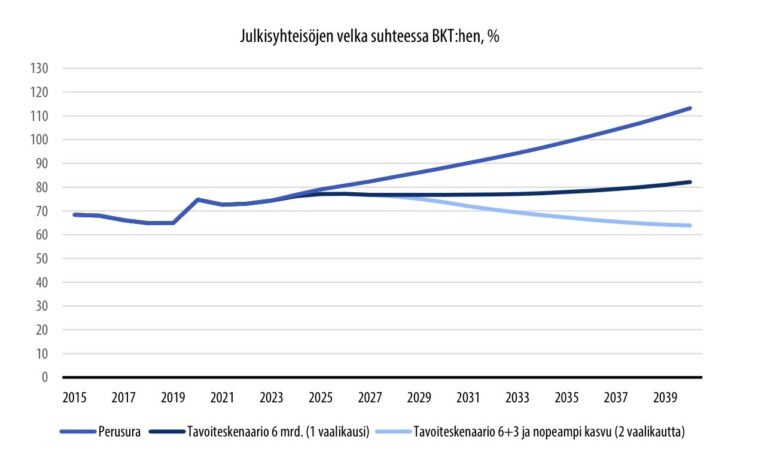 Näin käy Suomen velalle, jos päätöksiä lykätään