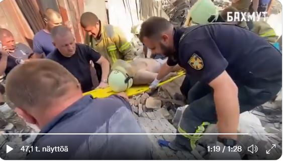 Donetskin alueella sijaitseva hotelli tuhoutui venäläisten pommituksessa.