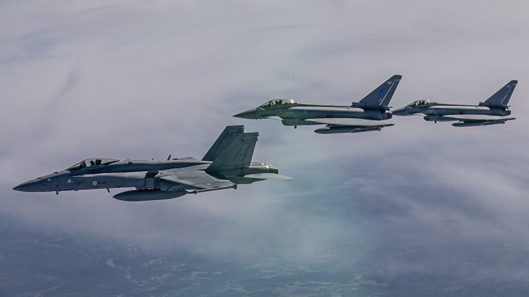 Britannian F-35:t ja Typhoonit torjuivat harjoituksessa Suomen Hornetien hyökkäystä Baltiaan