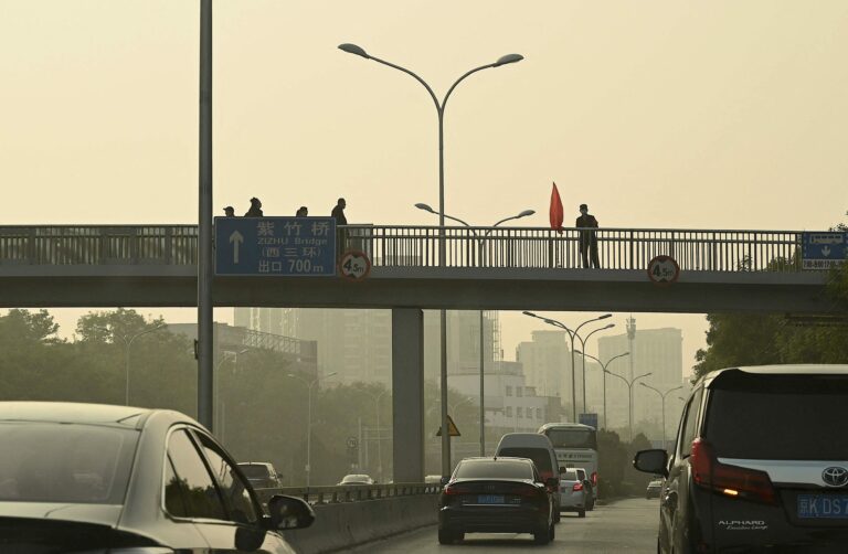 Ylikulkusillalle ripustettiin Xi Jinpingiä vastustavia lakanoita.