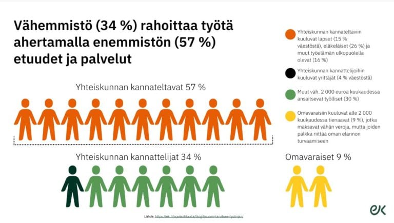 Ekonomistin pysäyttävä kuva: Kolmannes suomalaisista maksaa enemmistön etuudet ja palvelut