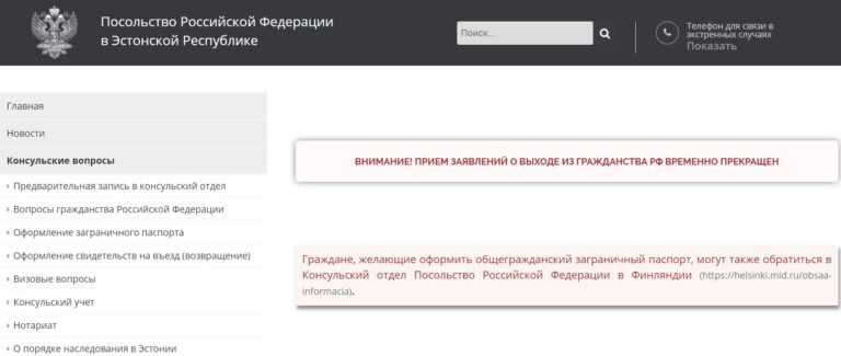 Venäjän Tallinnan-lähetystö ei ota enää vastaan hakemuksia kansalaisuudesta luopumisesta