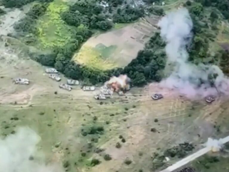 Hyökkääjän ajoneuvot rykelmässä – Ukrainan tykistö tuhosi
