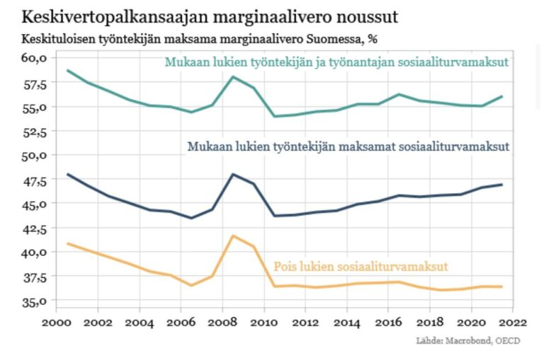 Keskituloisen työntekijän marginaalivero yli 55 prosenttia – ”Suunta käännettävä”