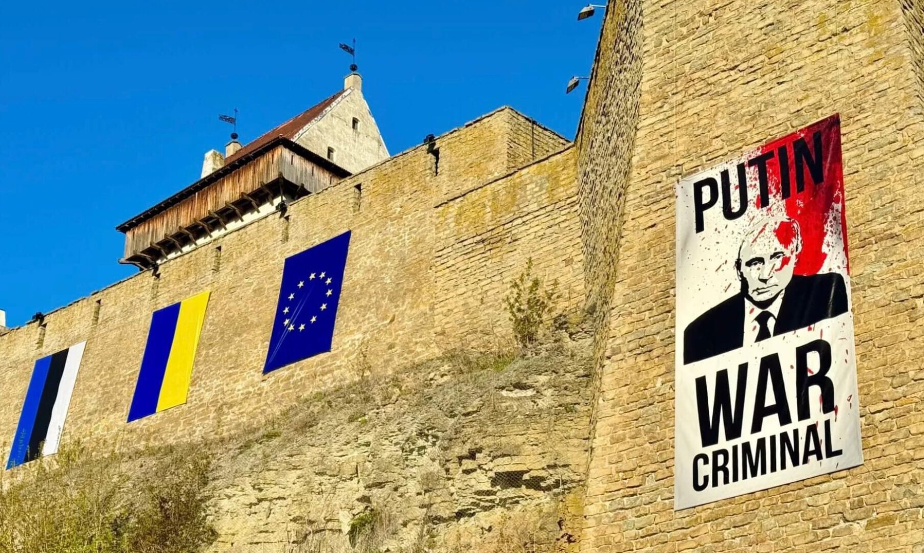 Narvan linnaan hilattiin juliste, joka tuskin miellyttää Vladimir Putinia.