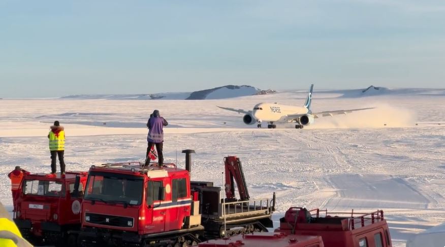 Suuren matkustajakoneen saapuminen jäätikölle vaati erityisjärjestelyitä.